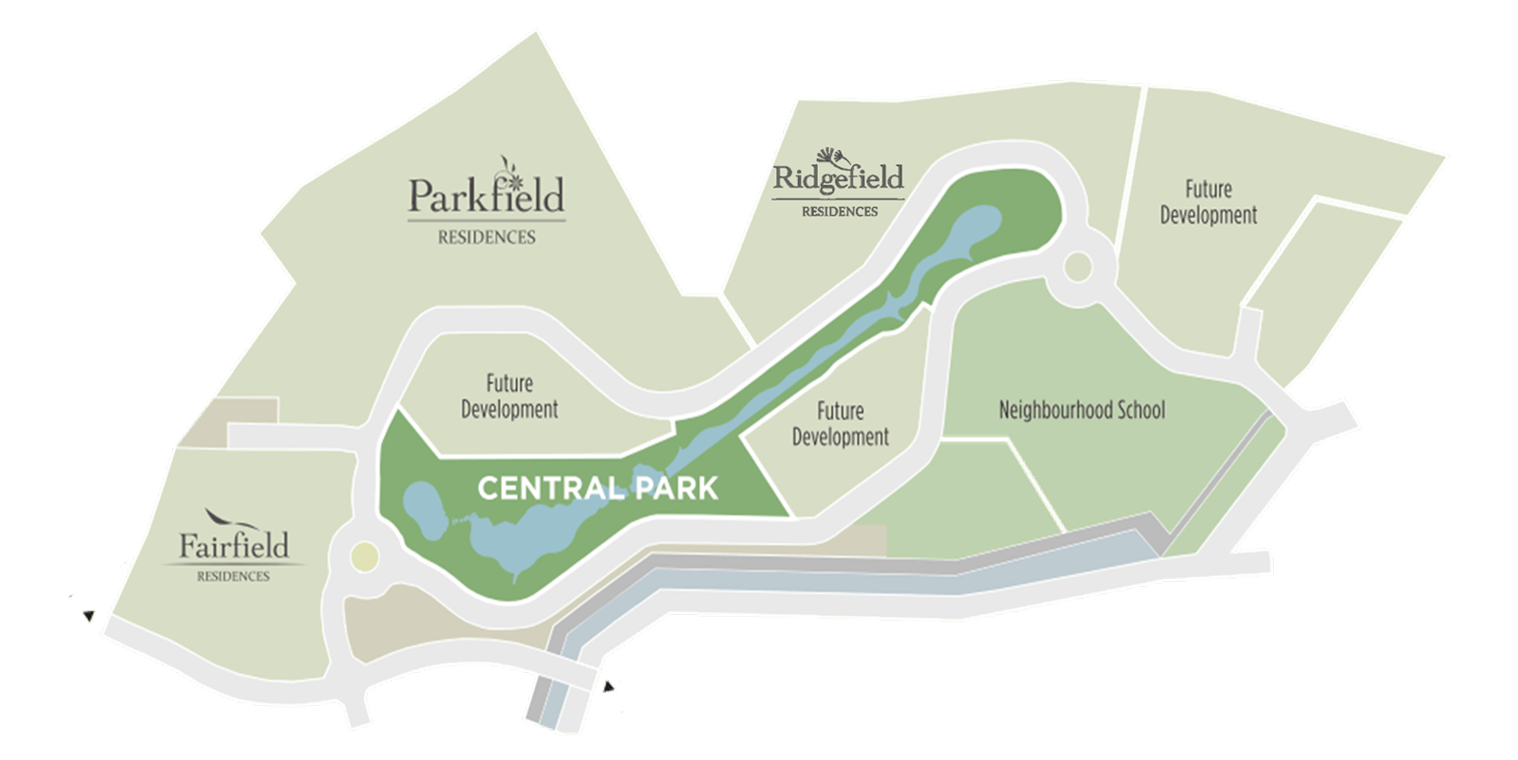 Future lakeside condos pepper the banks of the Central Park, giving high rise residences scenic views of nature